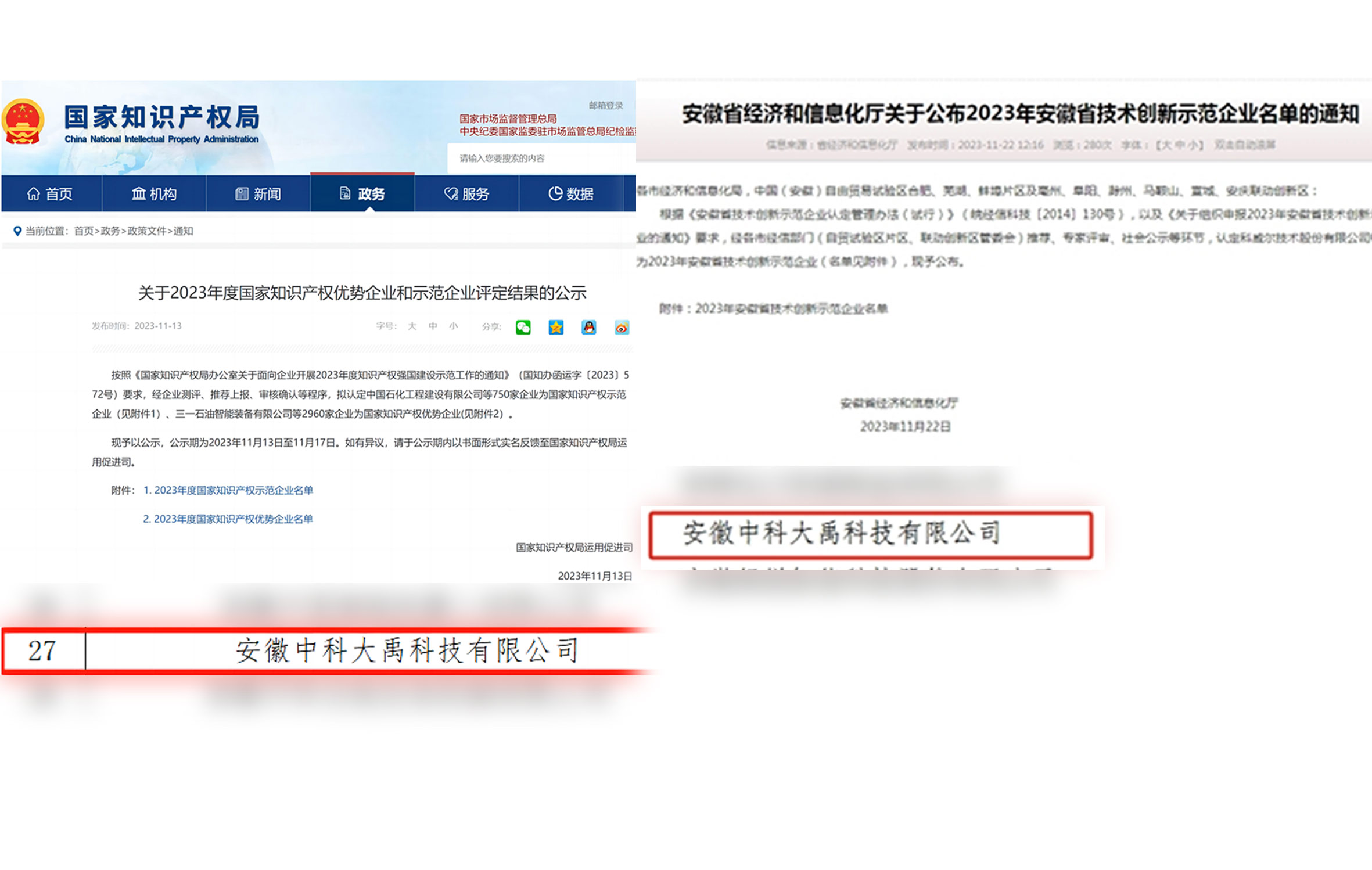 • 評定為2023年度國家知識產權優勢企業 入選2023年安徽省技術創新示范企業名單